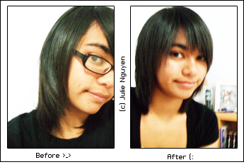 I finally got a new hair cut. After months of begging, my mom finally gave me the money to go get a hair cut. I printed out a picture of a girl with a mullet/layered hair, and gave it to my hairstylist, Miki, to cut for me. The top part of my hair turned out great, but the bottom was ehhhh. At least she listened to me when i told her not to thin it too much and give too many layers.